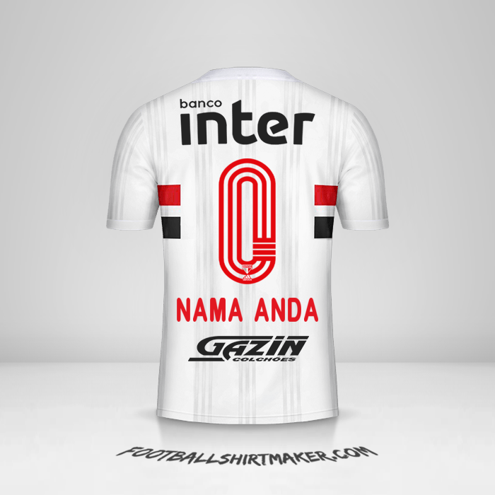 Font Sao Paulo FC jersey 2020/21. Huruf dan angka tercetak di bagian belakang.